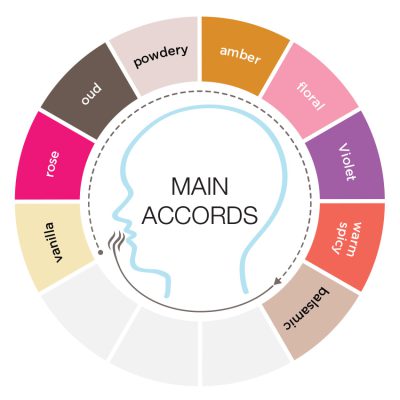 All Notes ที่เปิดกลิ่นแรกสัมผัสด้วยกลิ่น ให้ความรู้สึกเหมือนอยู่ในสวนกุหลาบที่มีความหอมที่แตกต่างกันหลายสายพันธุ์ เช่น Rose otto Bulgaria, Rose de Mai และ Rose Blossom เมื่อประสมรวมกันจะได้เป็นกลิ่นที่มีความหอมของกุหลาบที่มีความนุ่มนวล ไม่ฉุน หอมอวล สร้างความเคลิบเคลิ้ม ผ่อนคลาย หวานนุ่มลึก ตามมาด้วยความรู้สึกหนักแน่น ลึกลับ ดึงดูดที่ได้มาจาก Oud มาช่วยเสริมให้มิติของกลิ่นกุหลาบมนกลม ลงตัว น่าหลงใหลและมีเสน่ห์มากยิ่งขึ้น นี่คือกลิ่น Oud ที่สามารถสร้างความรู้สึกประหลาดใจให้กับใครหลายๆ คนเกิดจินตภาพซึ่งสร้างขึ้นมาจากกลิ่น ถึงการวางตัวที่เหมาะสม สูงส่ง มาดนิ่ง เรียบหรู ดูแพง รสนิยมดี มีความเป็นผู้นำที่สง่างาม น่ามองแบบไม่อาจละสายตา ในช่วงกลาง Peony มอบคุณสมบัติ Powdery ให้ความรู้สึกสะอาดสะอ้าน